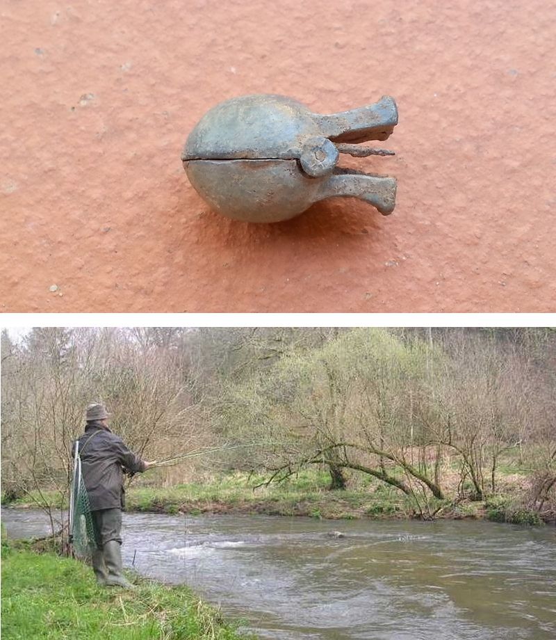 Trouvé à une dizaine de cm de profondeur, et à proximité d' une rivière, un plomb de sonde.